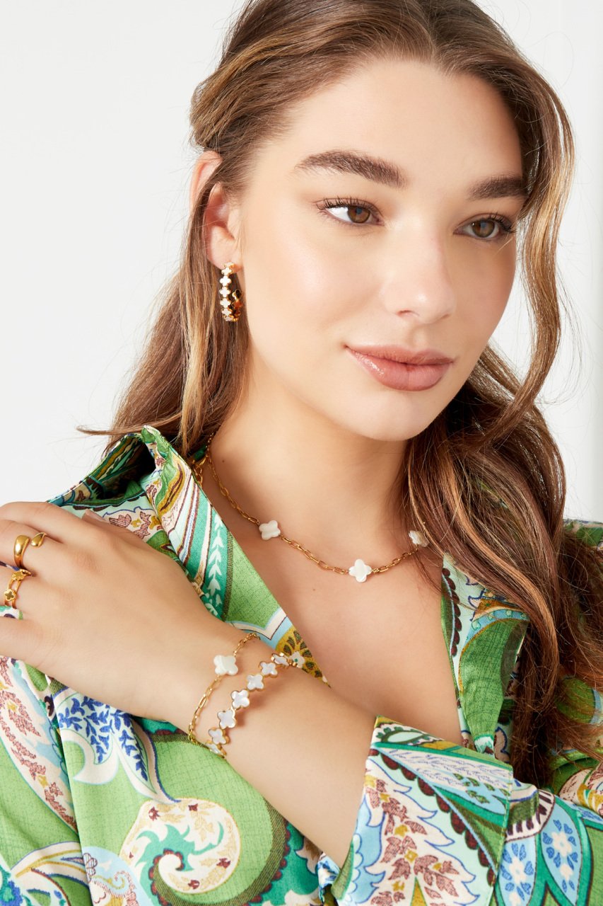Shop deze schattige gouden armband in de vorm van veel witte klavertjes nu! Superleuk om deze trendy armband te combineren... Read more