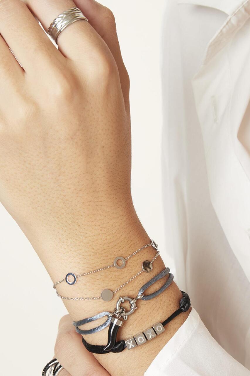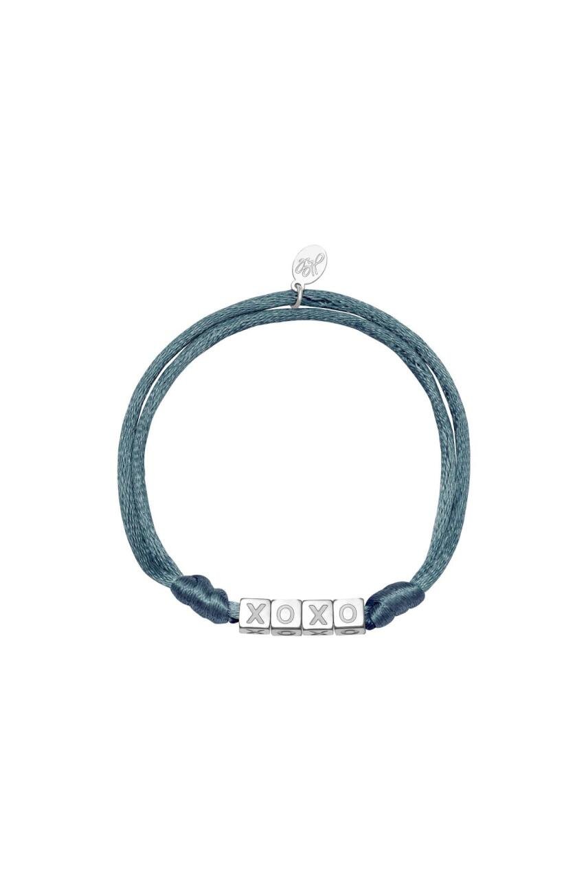 Armband met satijnen koord en vierkante kralen met de boodschap xoxo. Verkrijgbaar in verschillende kleuren.Materiaal: Stainless Steel & Polyester Kleur:... Read more