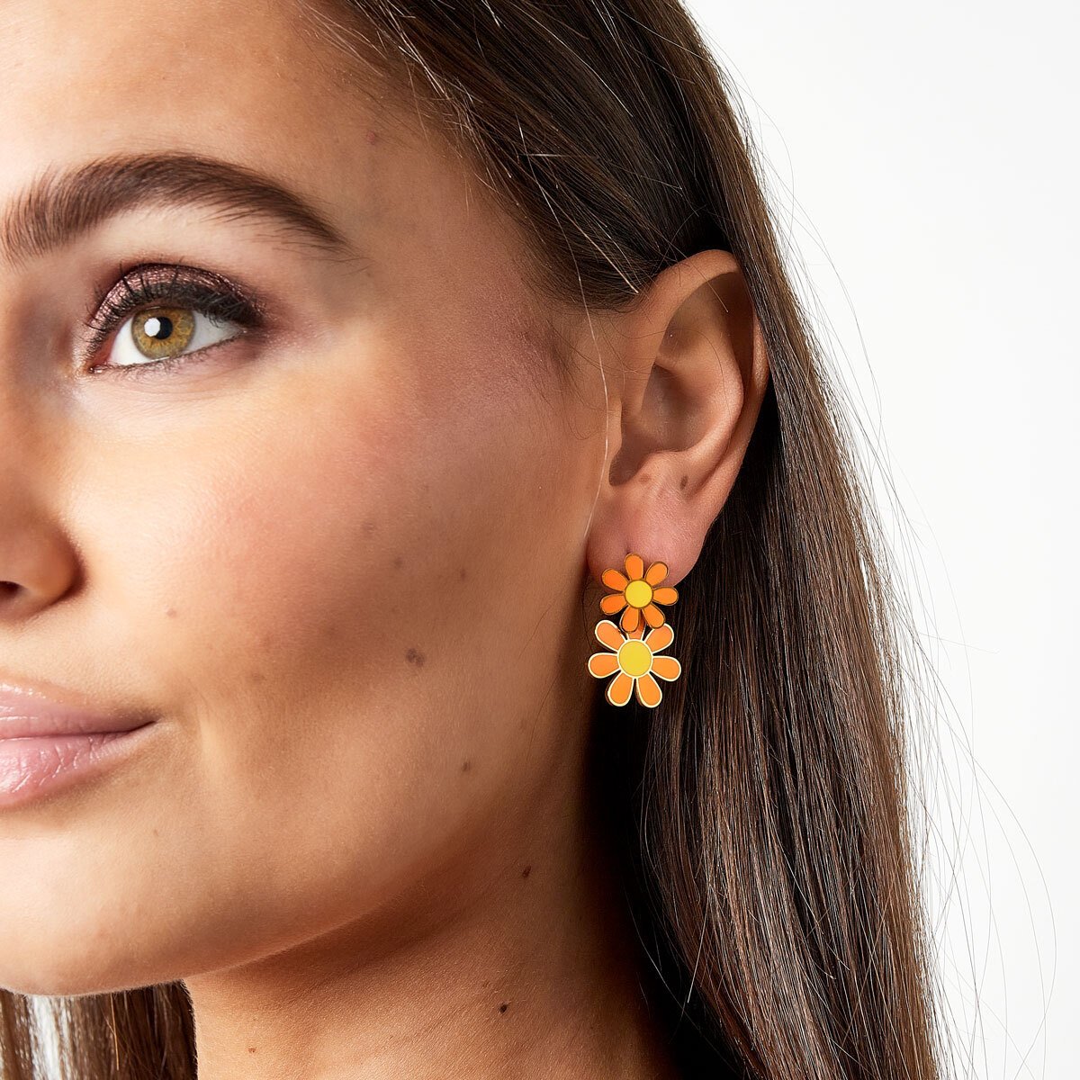 Hoe leuk zijn deze prachtige oorbellen met 2 grote bloemetjes in de kleuren geel en oranje. Deze prachtige en vrolijke... Read more