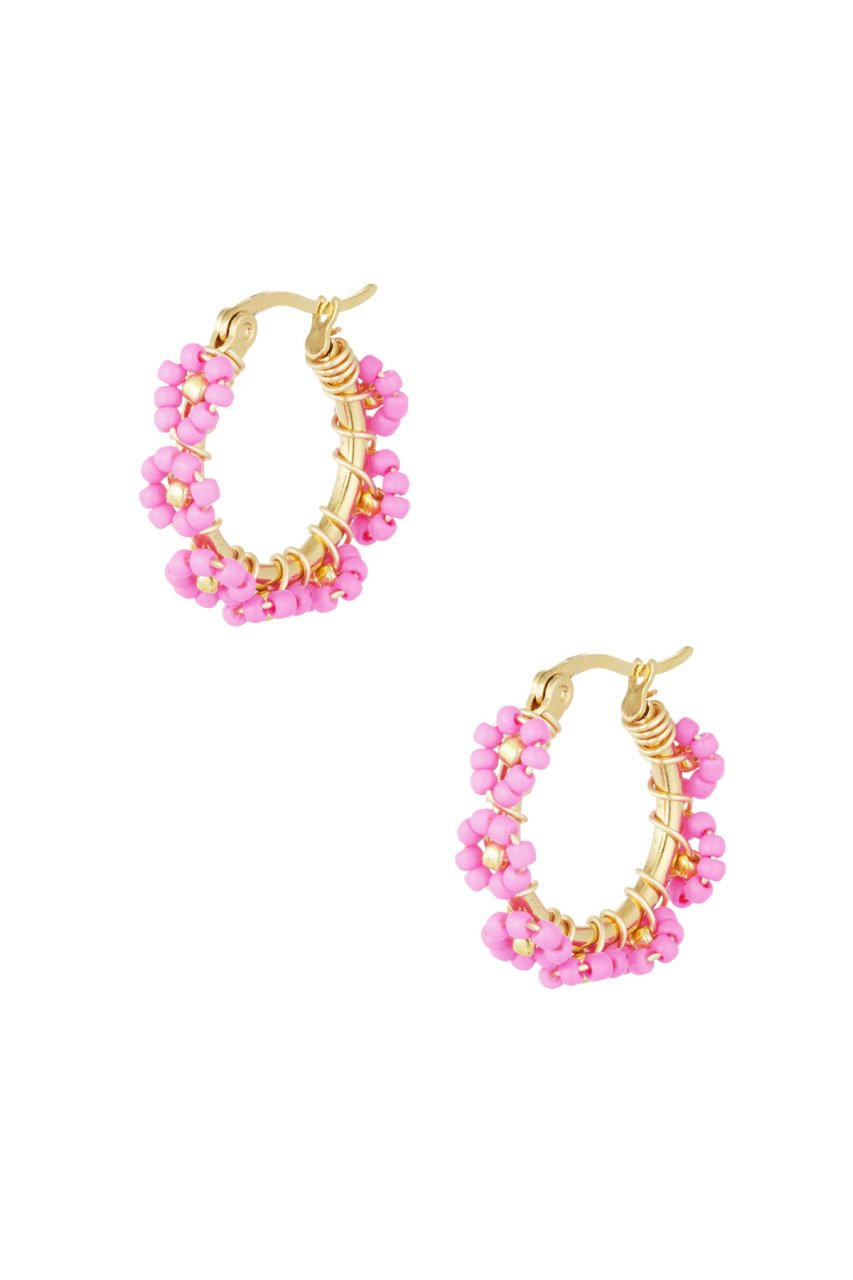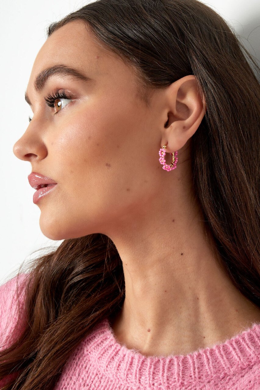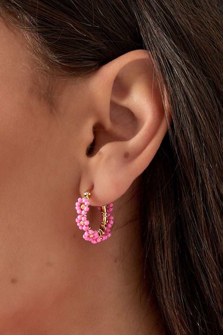 Cirkeloorbellen met Roestvrijstalen Glaskralen - Fuchsia