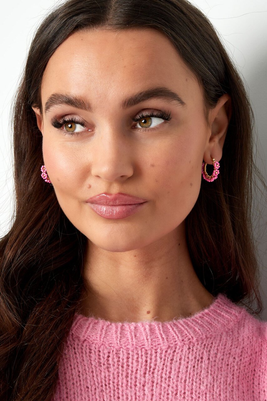 Cirkeloorbellen met Roestvrijstalen Glaskralen - Koraal