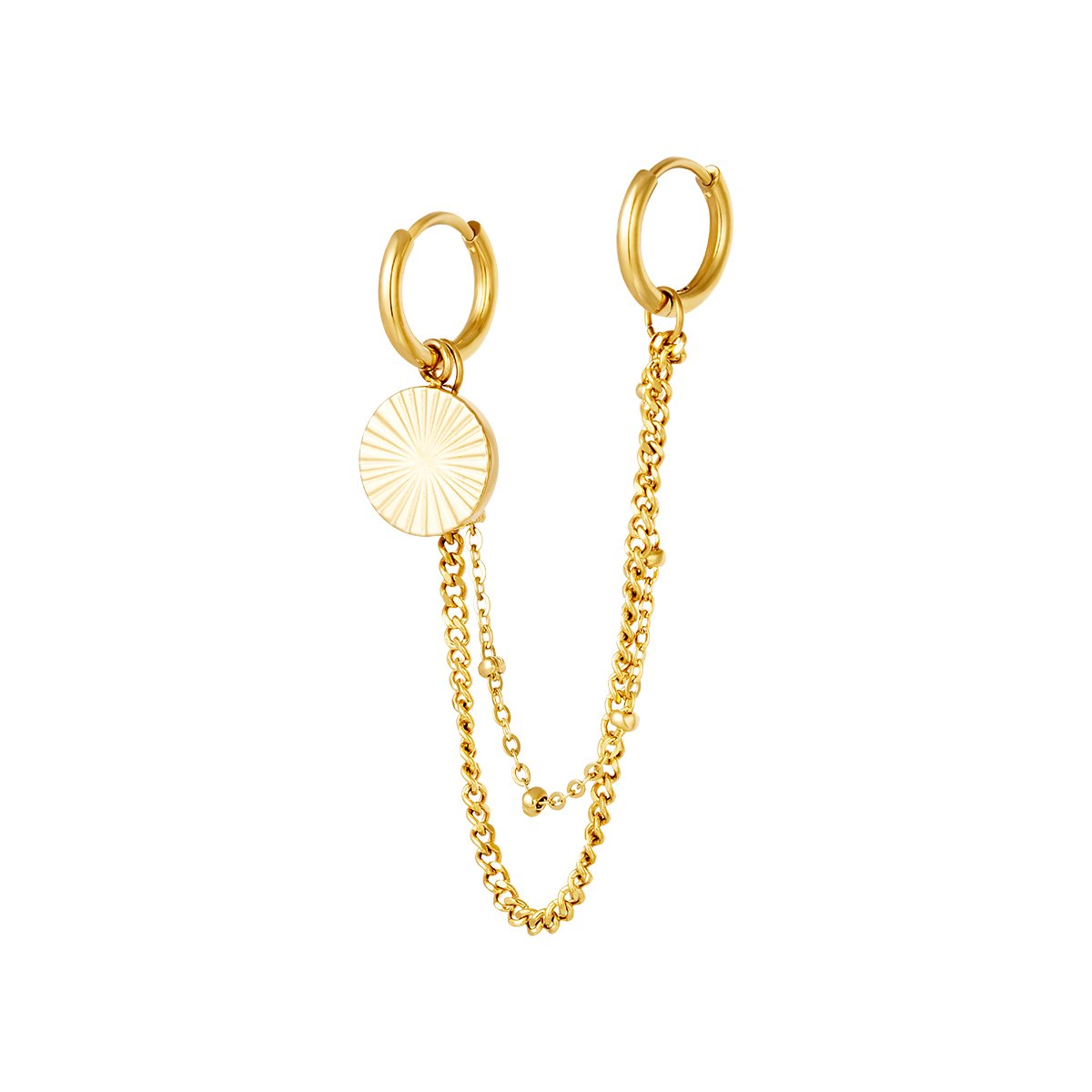 Materiaal: Stainless Steel Kleur: Goud Gewicht: 2.40g Afmetingen: 9.10cm Eenheid: 1 oorbel Read more