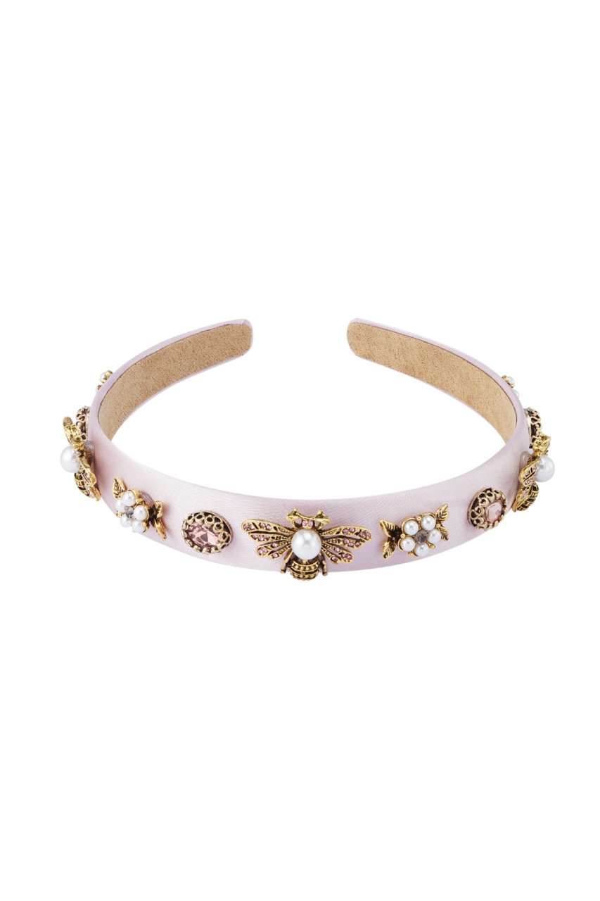 Hoe leuk is deze pastelroze dunne haarband met veel bedels, waaronder een bij en parels. De haarband is perfect met... Read more