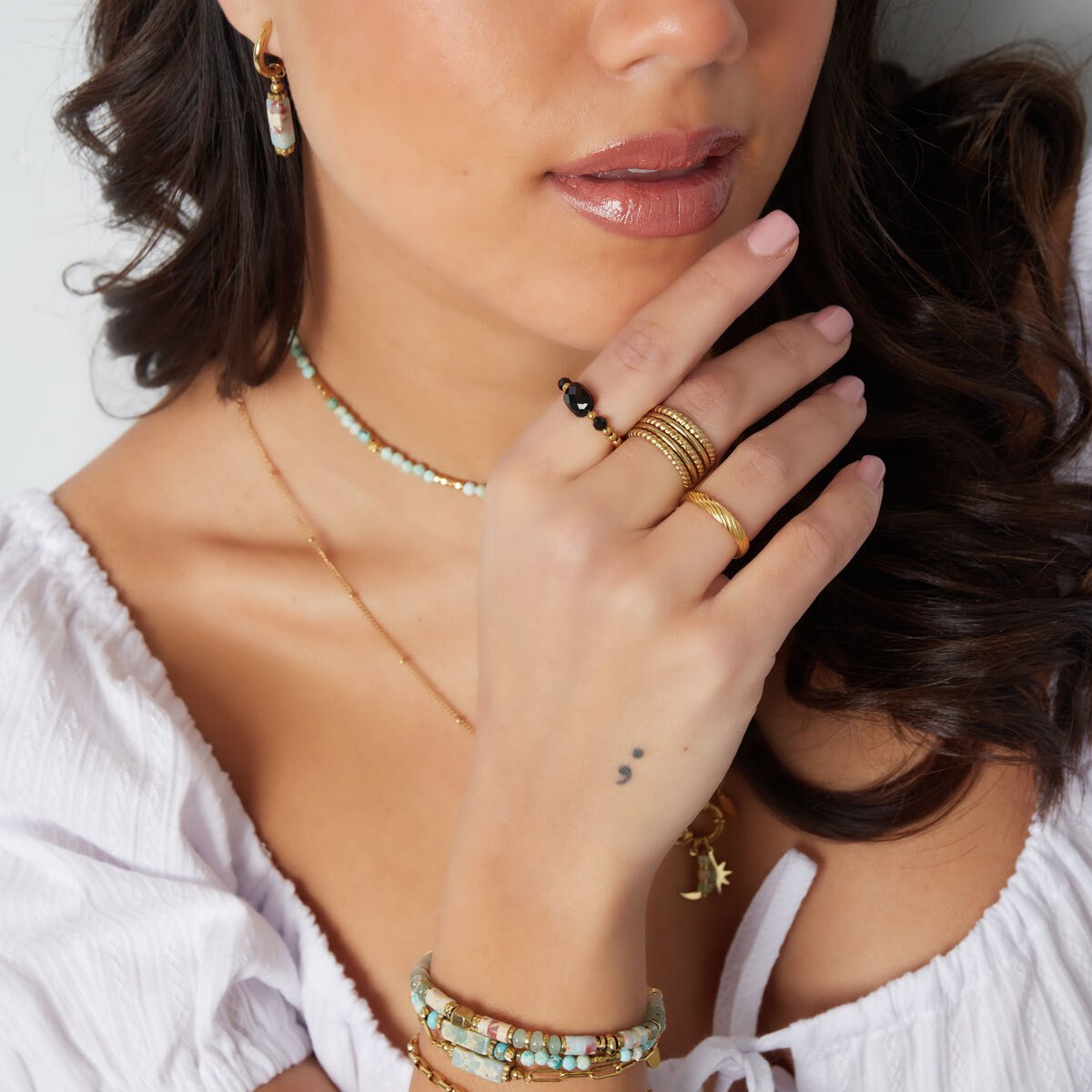 De perfecte statement ring! Deze gouden ring gemaakt van kraaltjes in combinatie met een grote zwarte steen is perfect voor... Read more