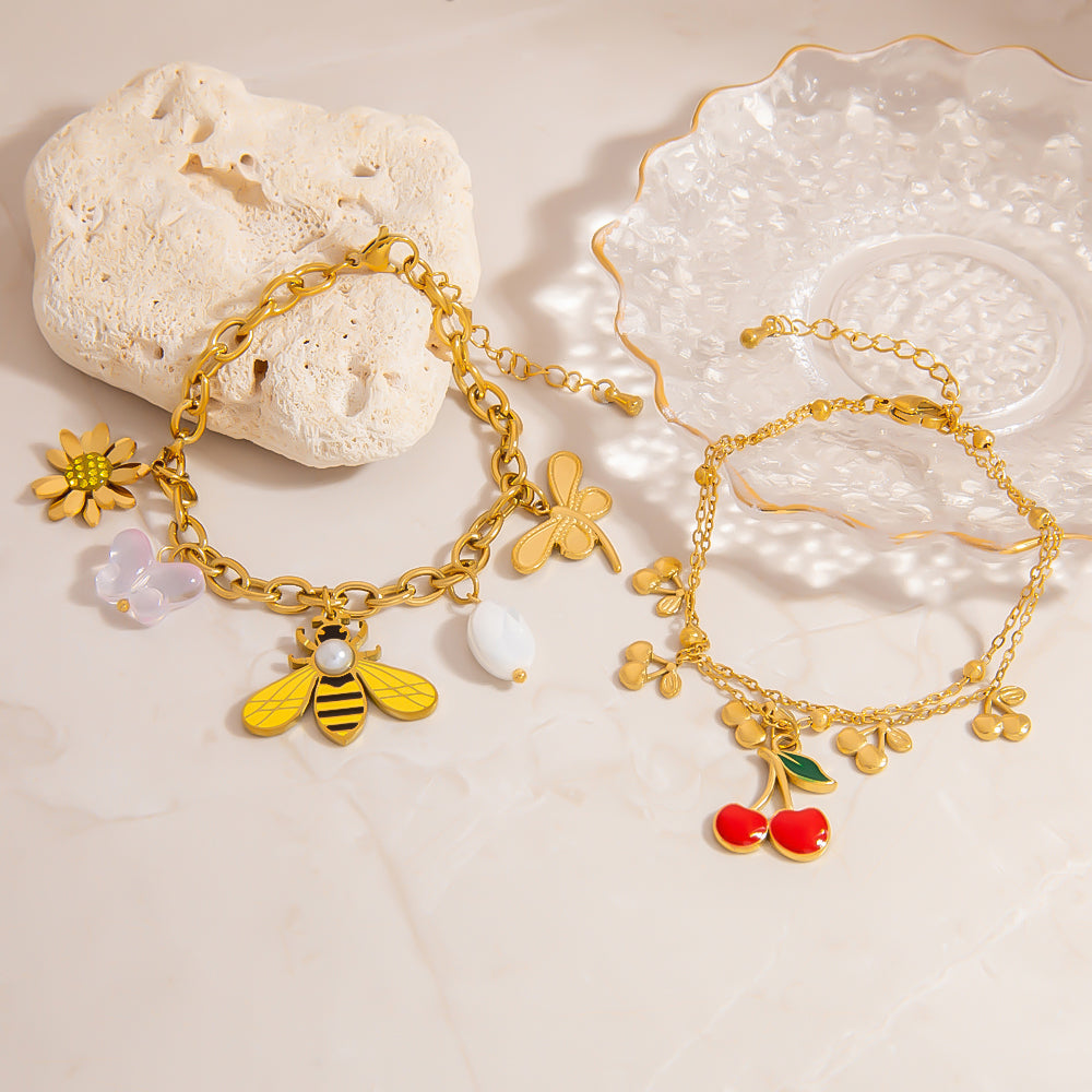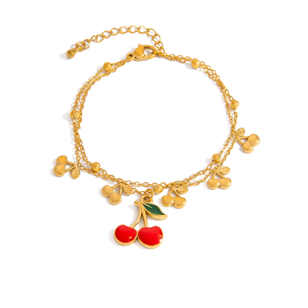 Deze verfijnde roestvrijstalen armband wordt gekenmerkt door delicate kersenbedels in goudkleurige uitvoering. Het roestvrije staal garandeert uitstekende corrosiebestendigheid en een... Read more