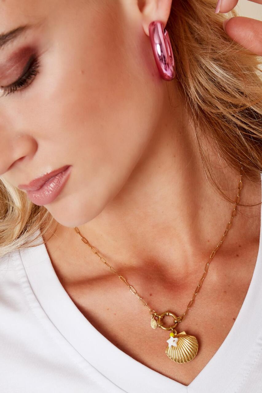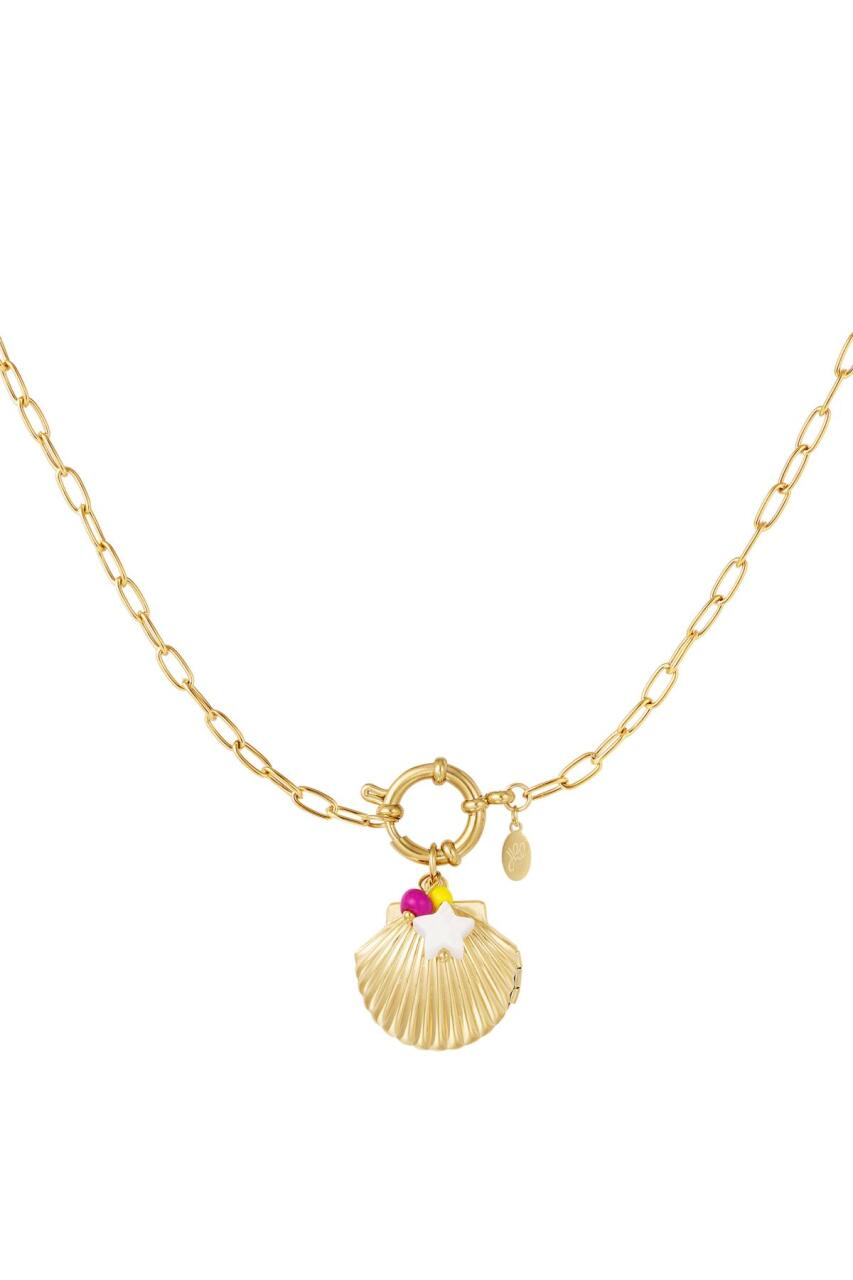 Ketting met schelp medaillon dat open en dicht kan.Materiaal: Stainless Steel, Glas, Schelp Kleur: Goud Gewicht: 7.20g Afmetingen: 45cm x... Read more