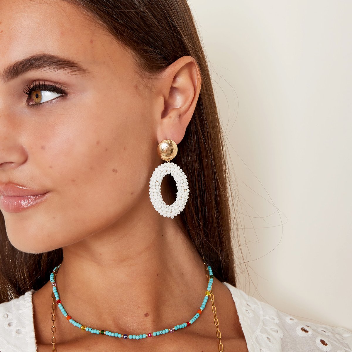Oorbellen met kleurrijke, ovale kralen met kralenMateriaal: Alluminium & Glas Kleur: Groen Gewicht: 8.70g Afmetingen: 5.50cm x 0 x 0 Read more