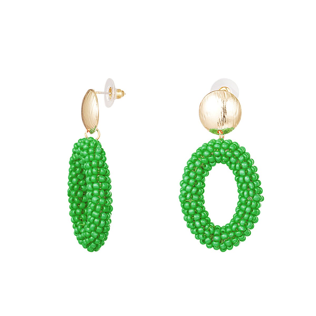 Kralen oorbellen ovaal groen