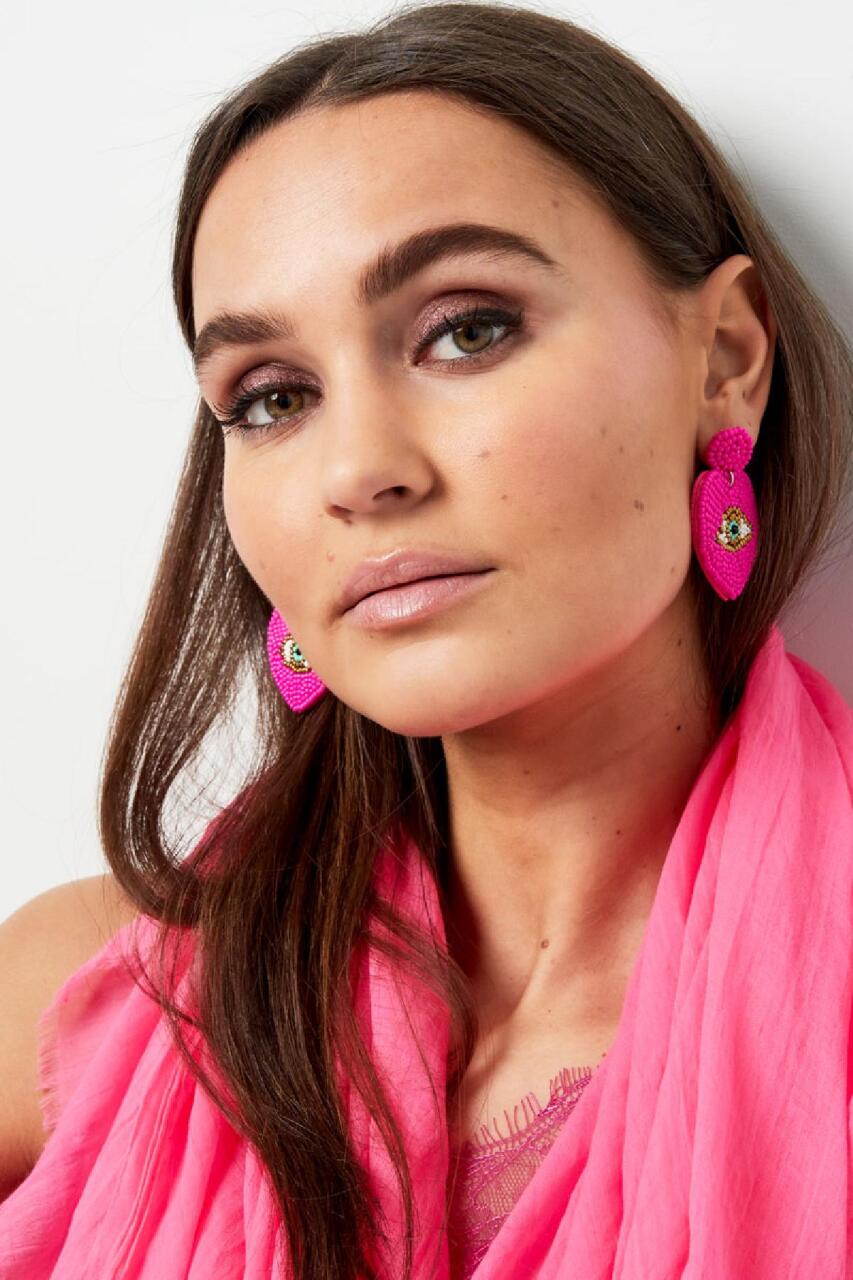Kralenoorbellen met oog Fuchsia