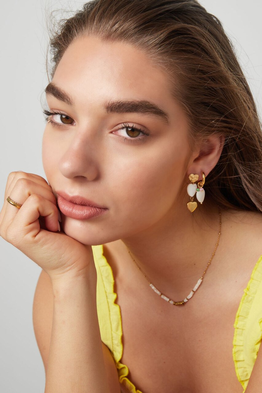 Wauw! Hoe tof zijn deze statement oorbellen met drie leuke hartjes, waarvan 2 goud en 1 wit! Superleuk te dragen... Read more