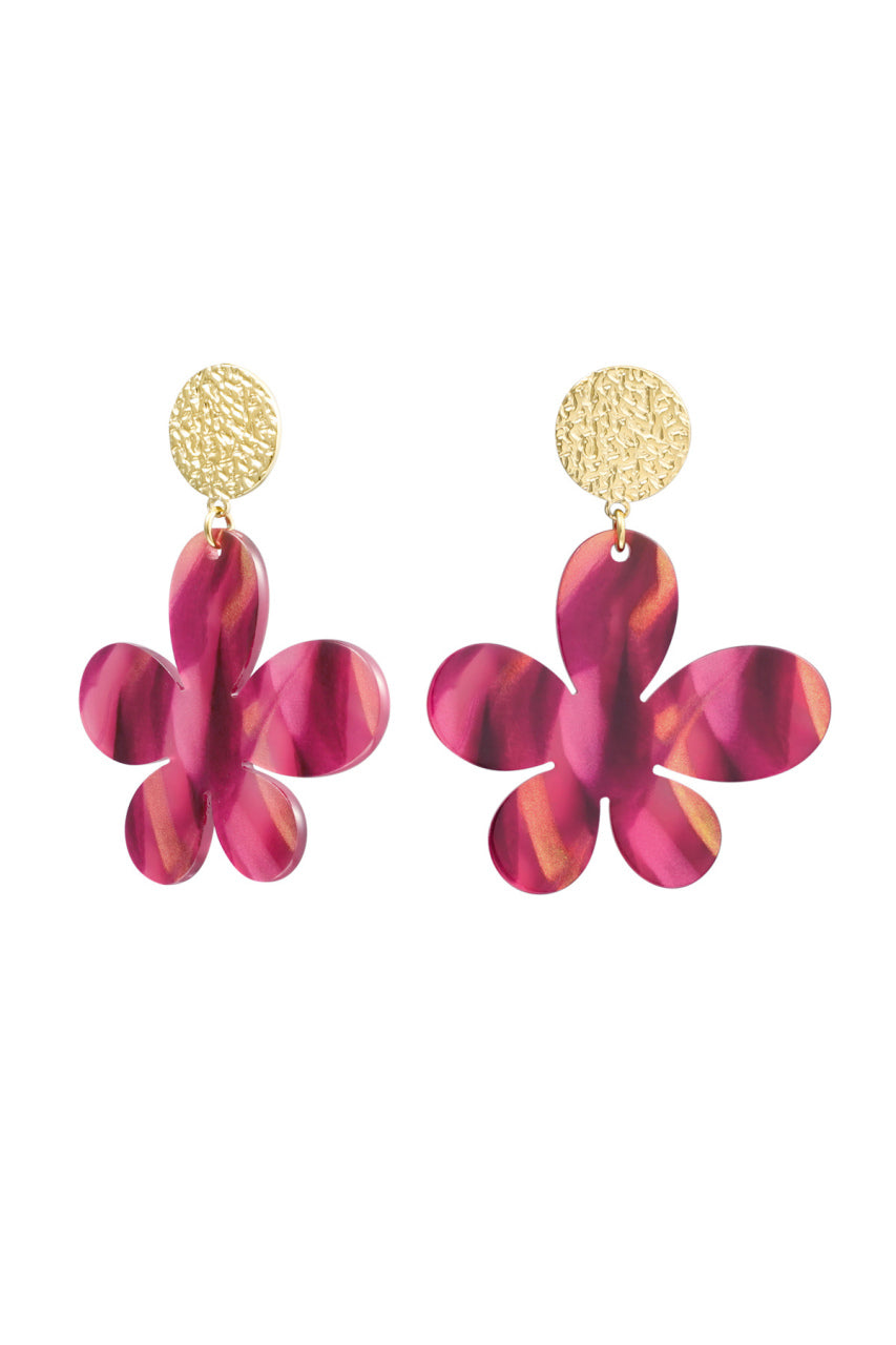 Hoe trendy zijn deze gouden met paarse print oorbellen in de vorm van een bloemetje van Yehwang! De oorbellen zijn... Read more