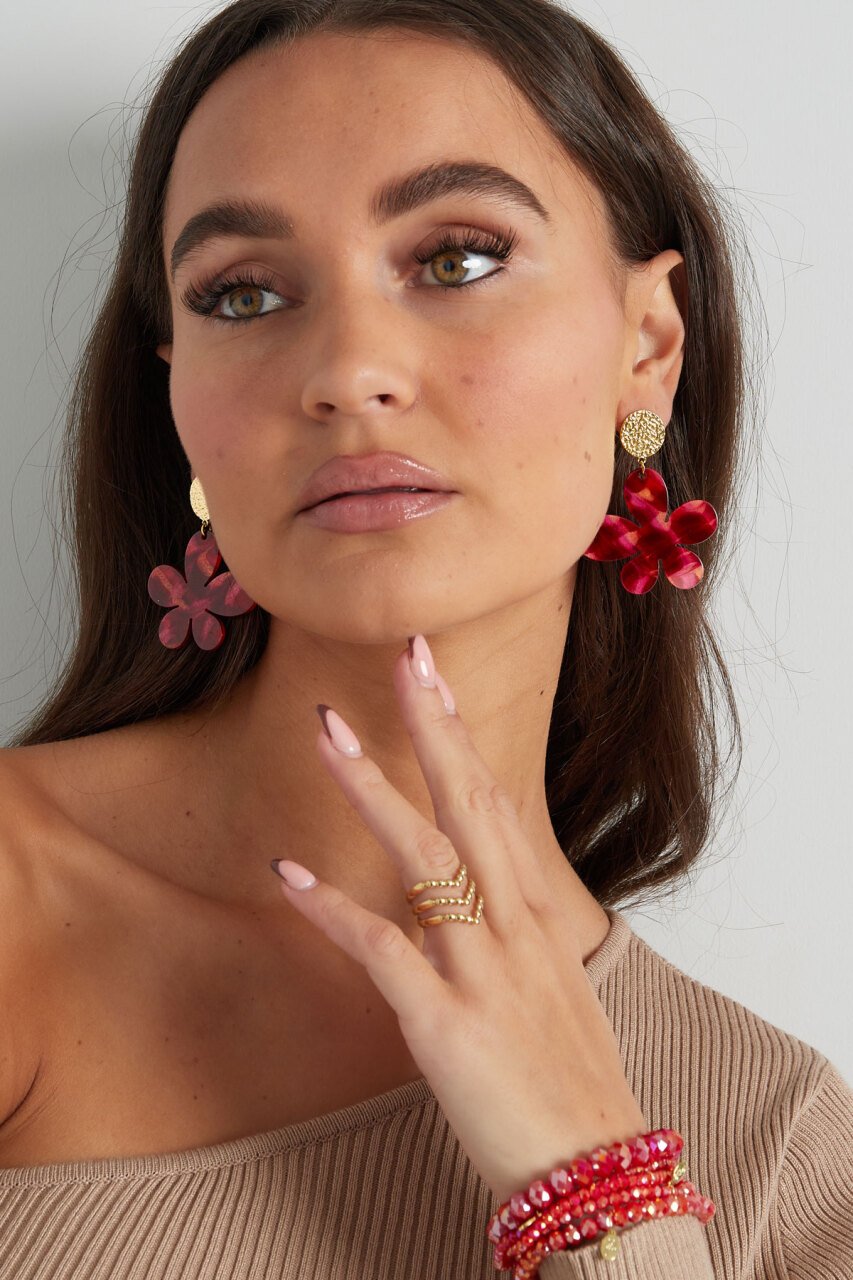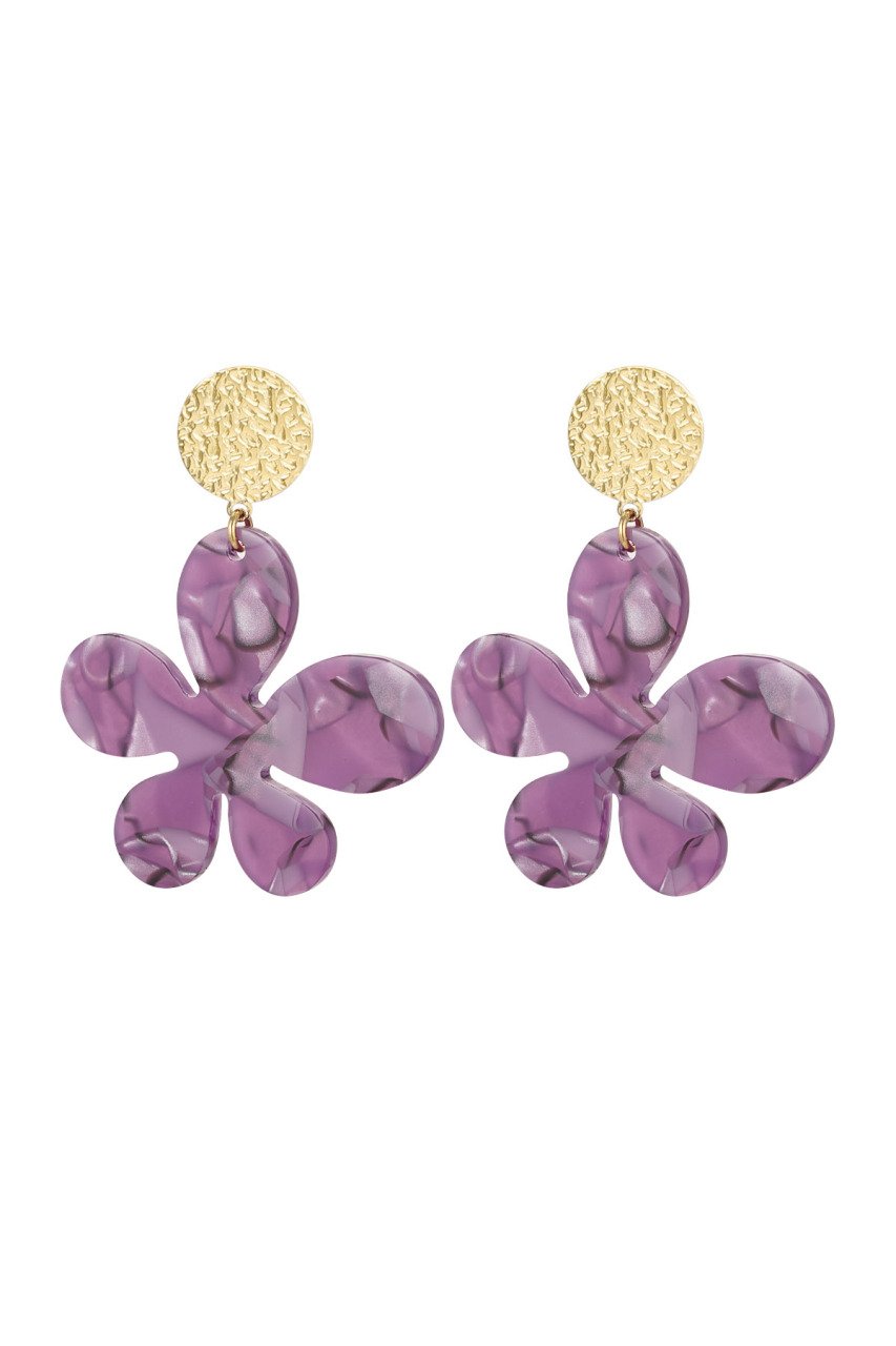 Hoe trendy zijn deze gouden met paarse print oorbellen in de vorm van een bloemetje van Yehwang! De oorbellen zijn... Read more