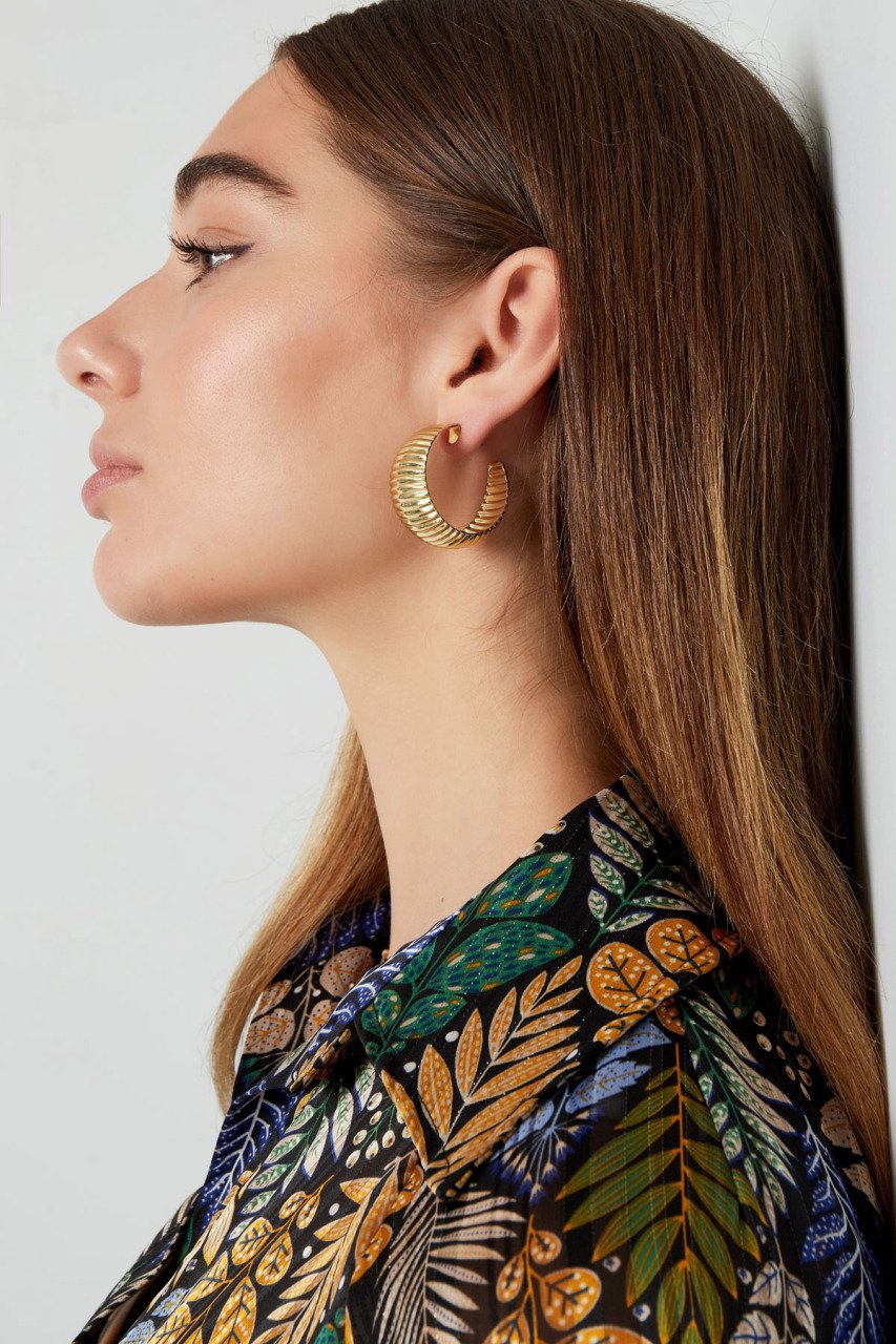 Wauw! Shop nu deze gouden statement oorbellen in de vorm van een hangende maan met opvallende grove streepjes print bij... Read more
