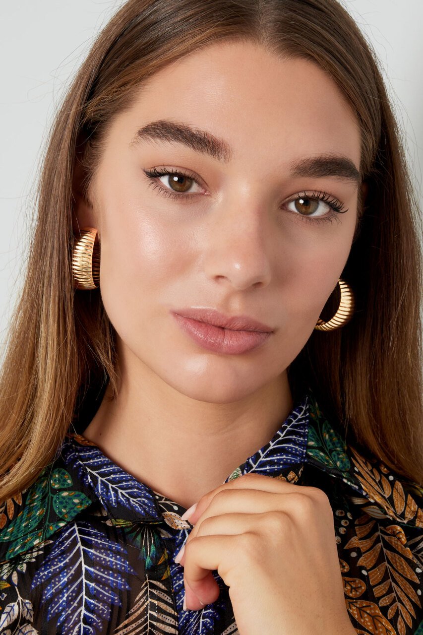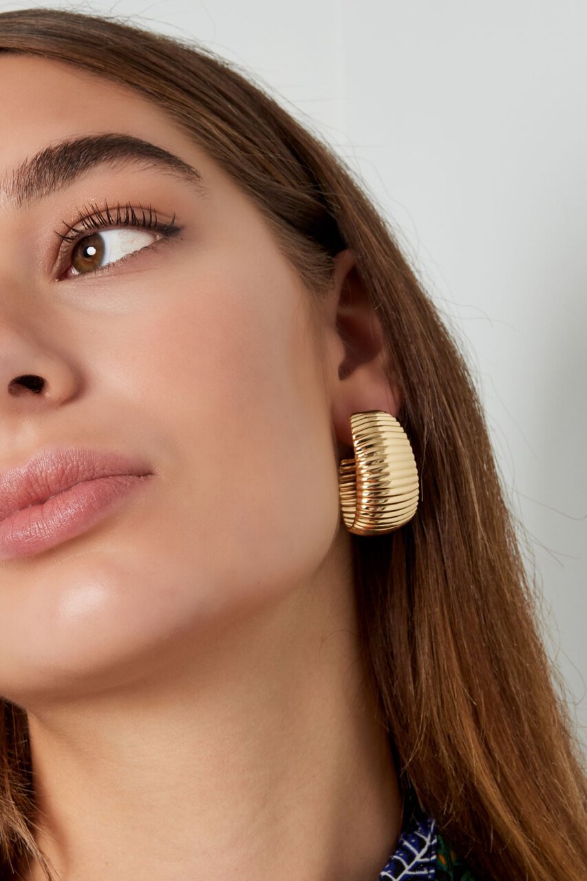 Wauw! Shop nu deze zilveren statement oorbellen in de vorm van een hangende maan met opvallende grove streepjes print bij... Read more