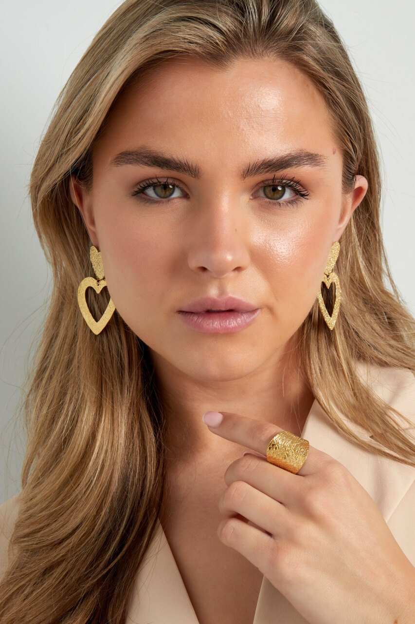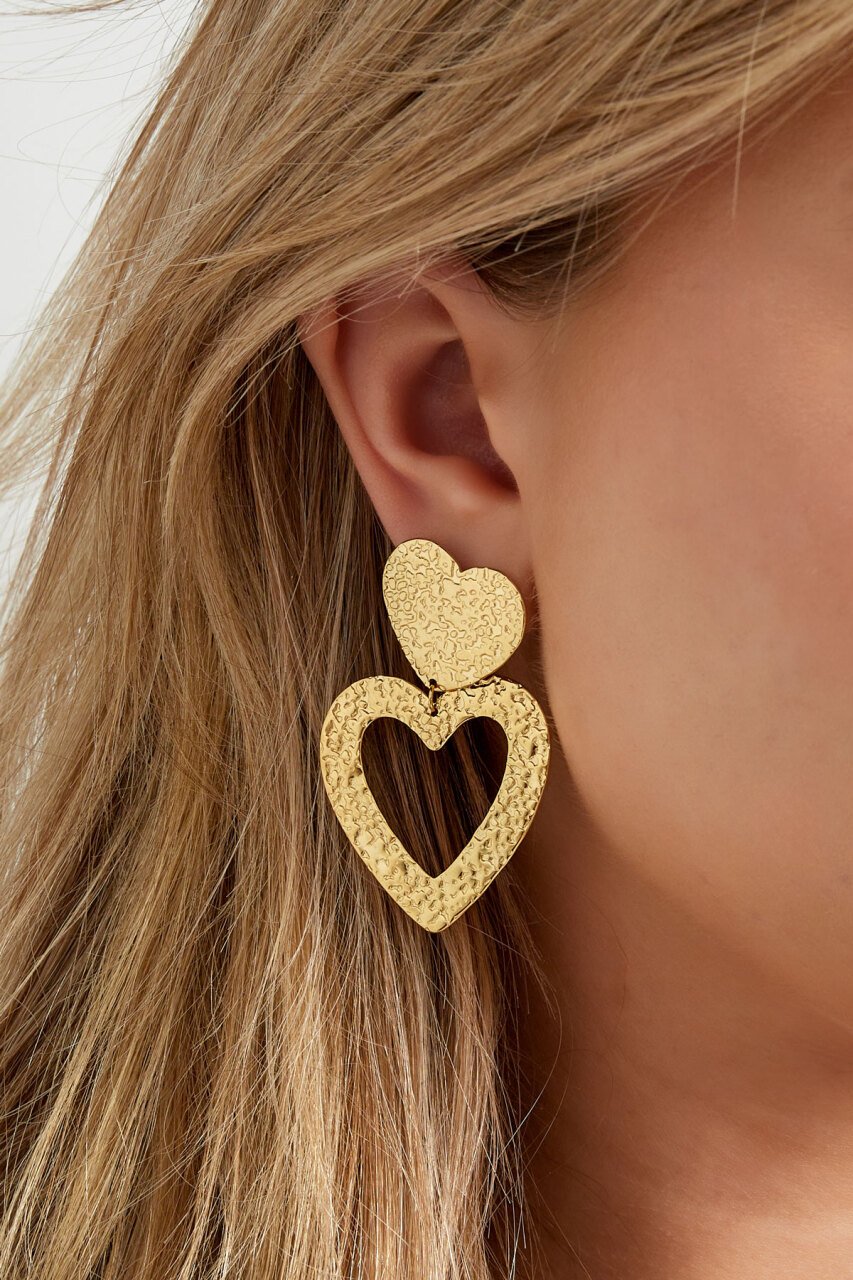 Oorbellen hartjes structuur - Goud
