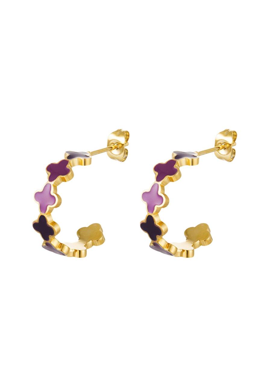 Oorbellen klaver kleurrijk - klein Paars