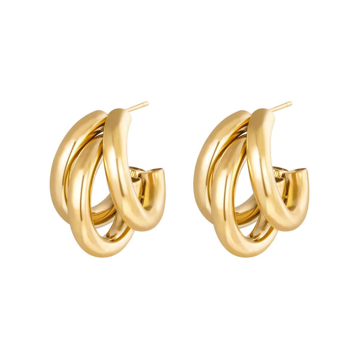 Drievoudig cirkelvormig paar oorstekers.Materiaal: Stainless Steel Kleur: Goud Gewicht: 9.80g Afmetingen: 2.70cm x 2.20cm Read more