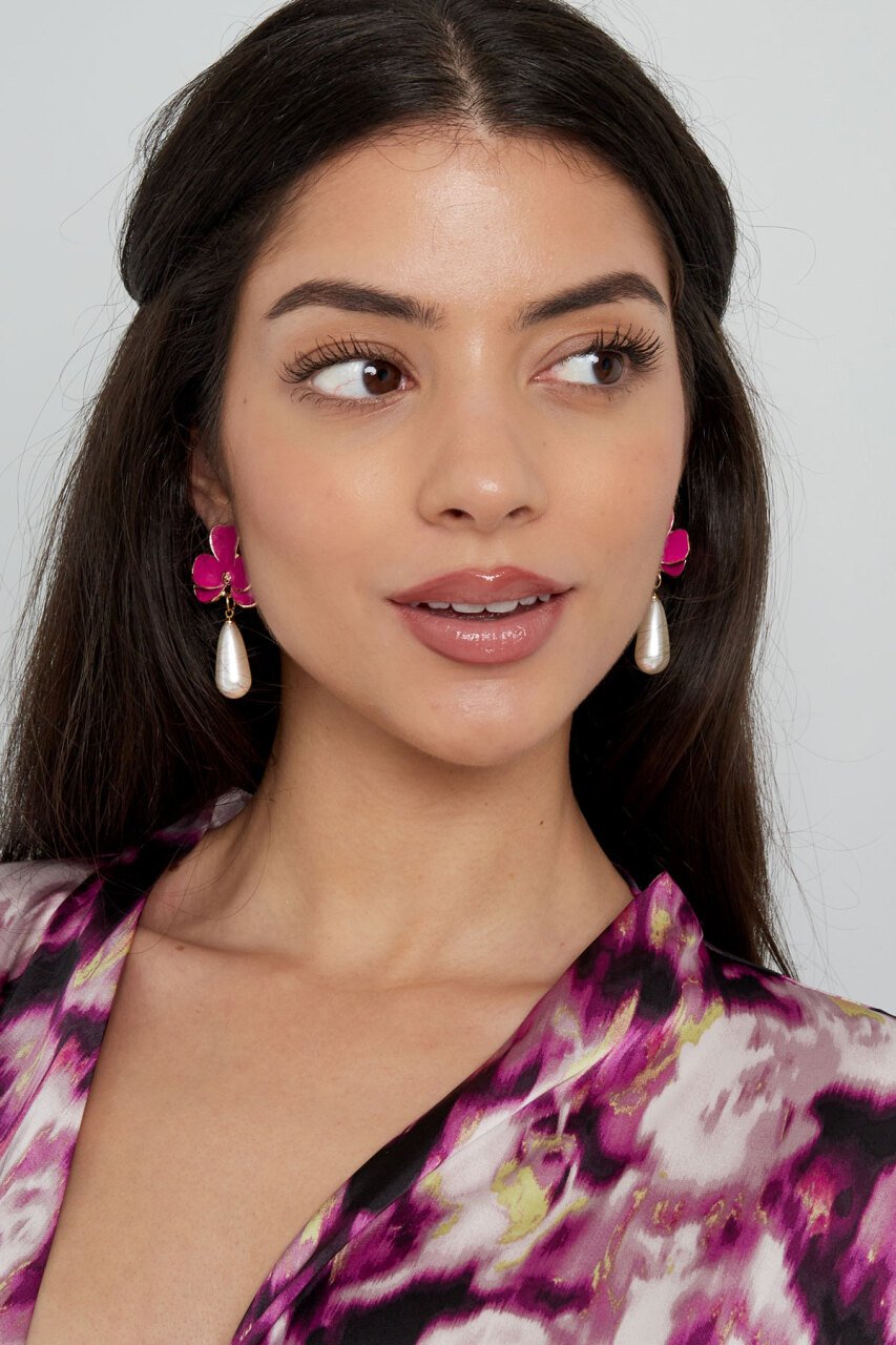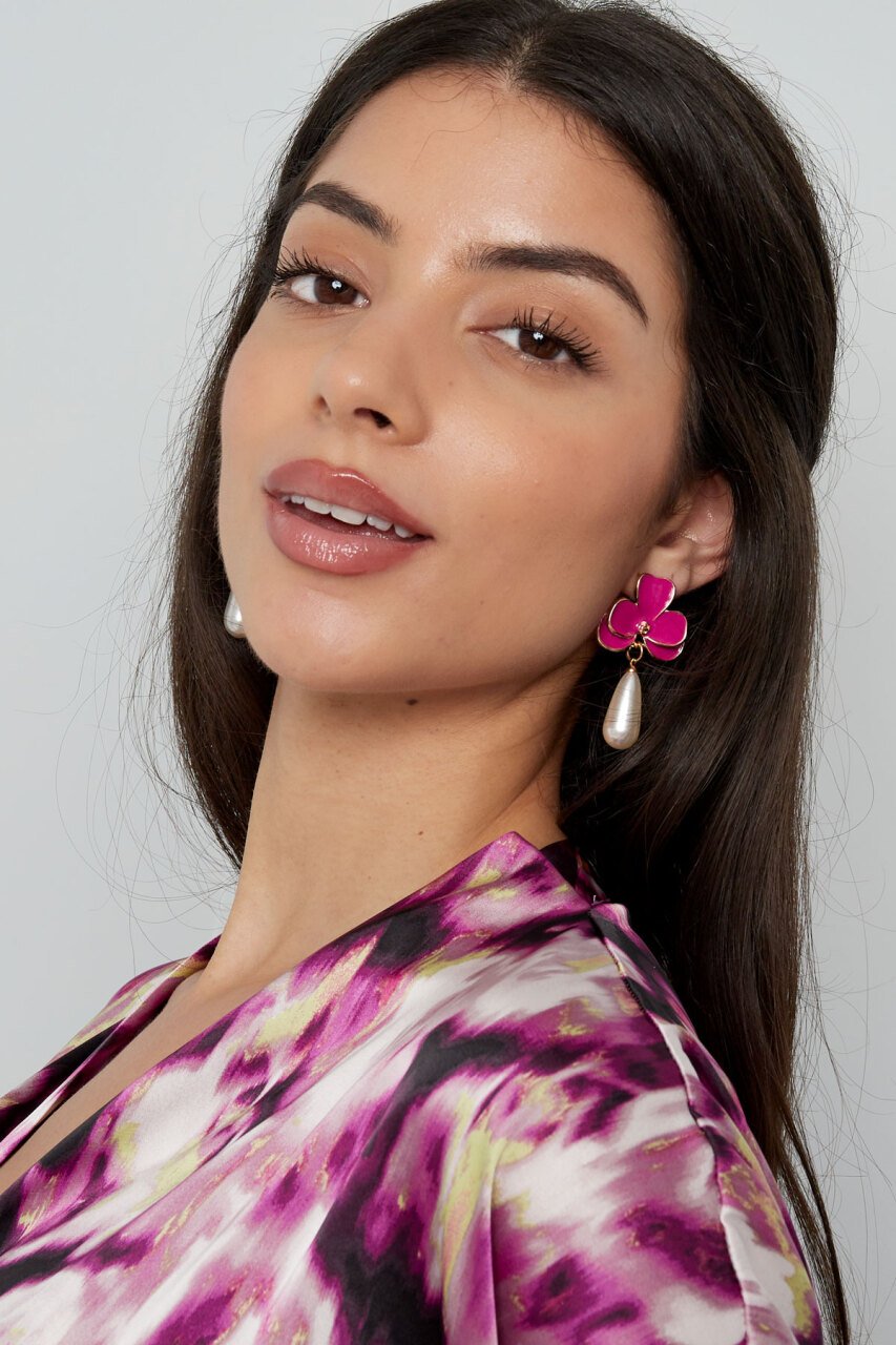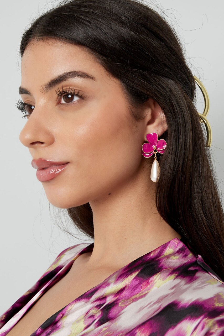 Materiaal: Alluminium, Parels, Emaille Kleur: Roze Kleur 2: Goud Gewicht: 15g Afmetingen: 2.80cm x 5cm x 0 Read more