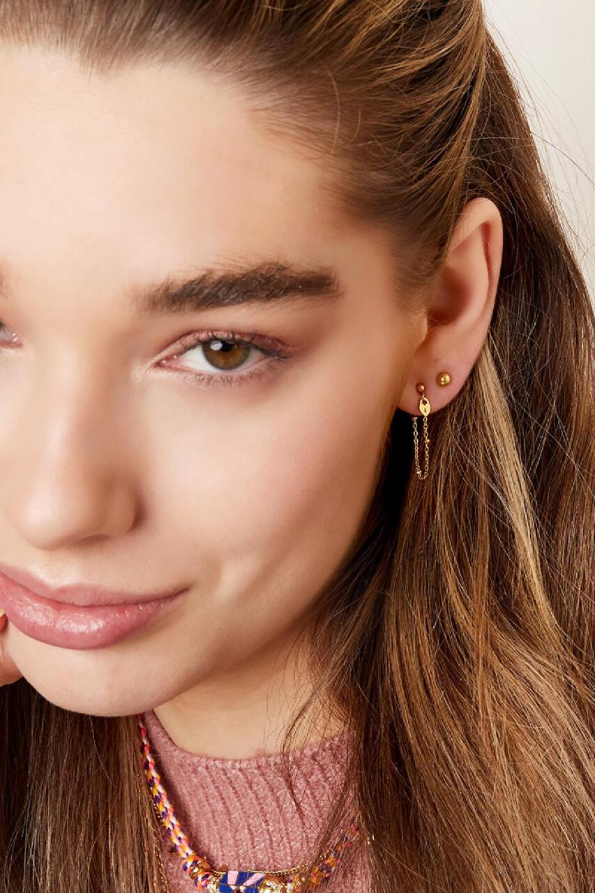 Roestvrijstalen oorbellen met bungelende ketting. Read more