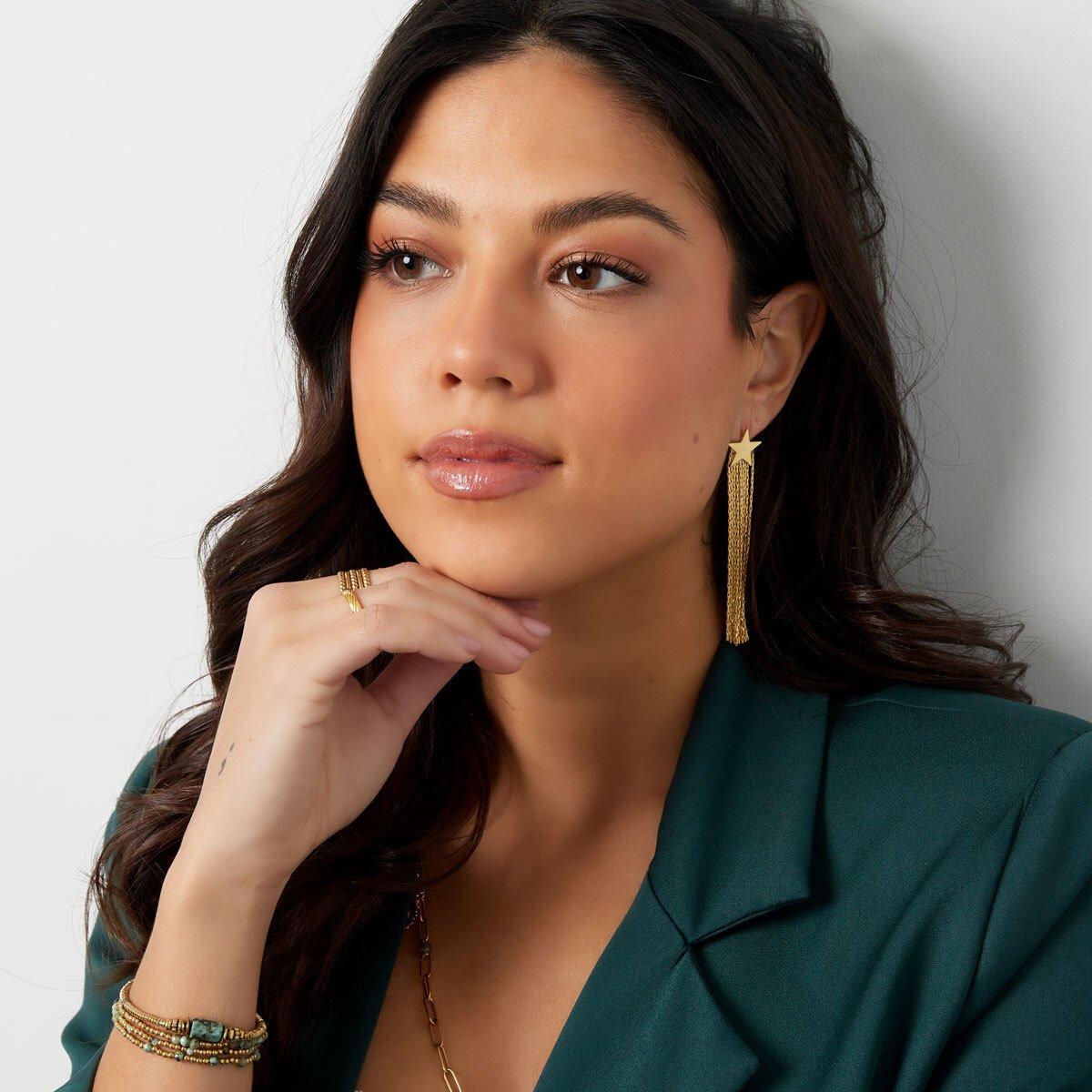 Prachtige sierlijke statement oorbellen met een ster en lange details in een gouden kleur! Deze oorbellen zijn perfect voor een... Read more