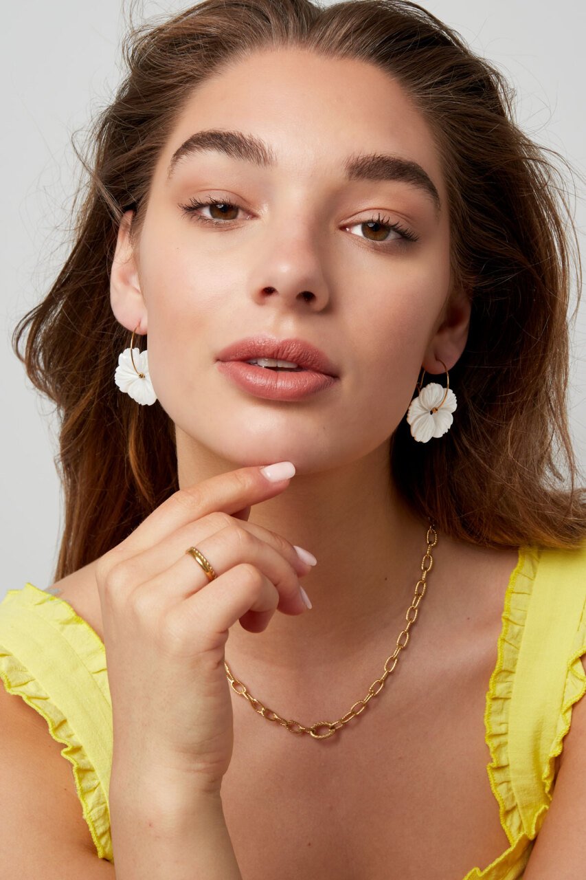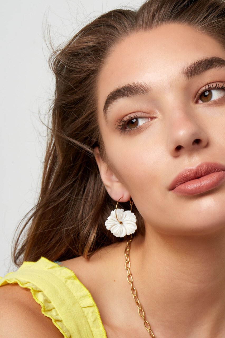 Materiaal: Stainless Steel & Schelp Kleur: Goud Kleur 2: Wit Gewicht: 5.40g Afmetingen: 3.70cm x 2cm x 0 Read more