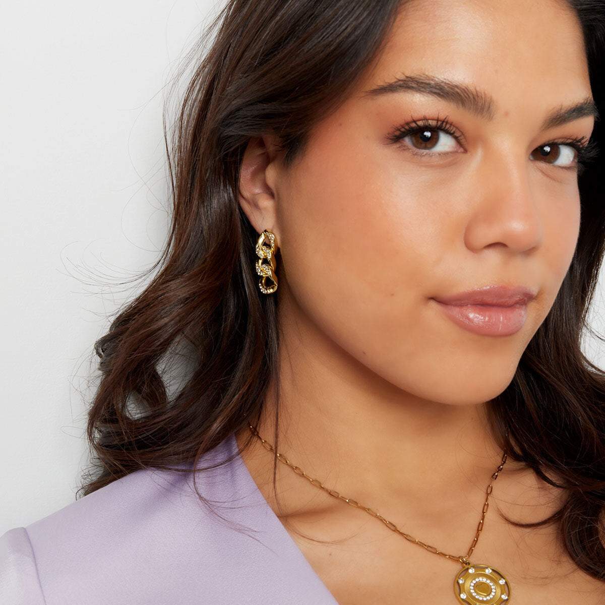 Hoe tof zijn deze prachtige gouden oorstekers met zirkoon in de vorm van schakels! Superleuk om deze oorbellen te dragen... Read more