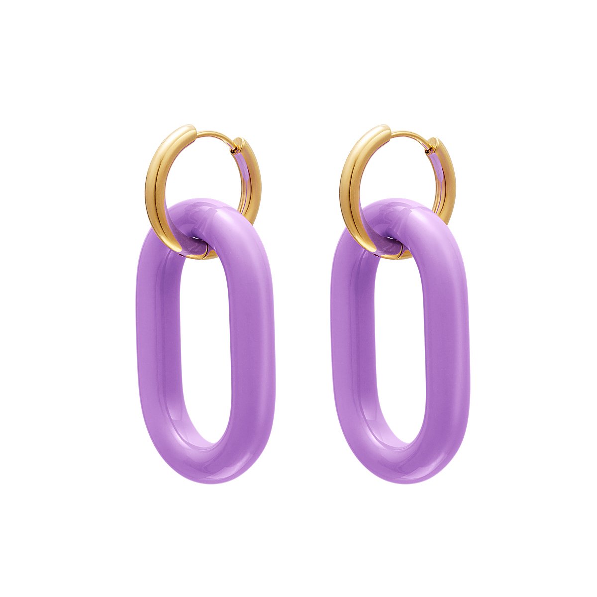 Paarse oorbellen met gouden schakel