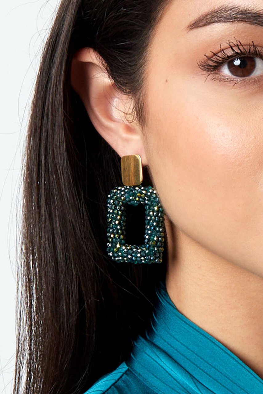 Hoe leuk zijn deze rechthoekige oorbellen met glaskralen van Yehwang? Deze oorbellen geven een extra touch of color aan je... Read more