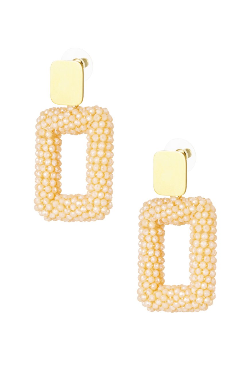 Hoe leuk zijn deze rechthoekige oorbellen met glaskralen? Deze oorbellen geven een extra touch of color aan je outfit.Materiaal: Stainless... Read more