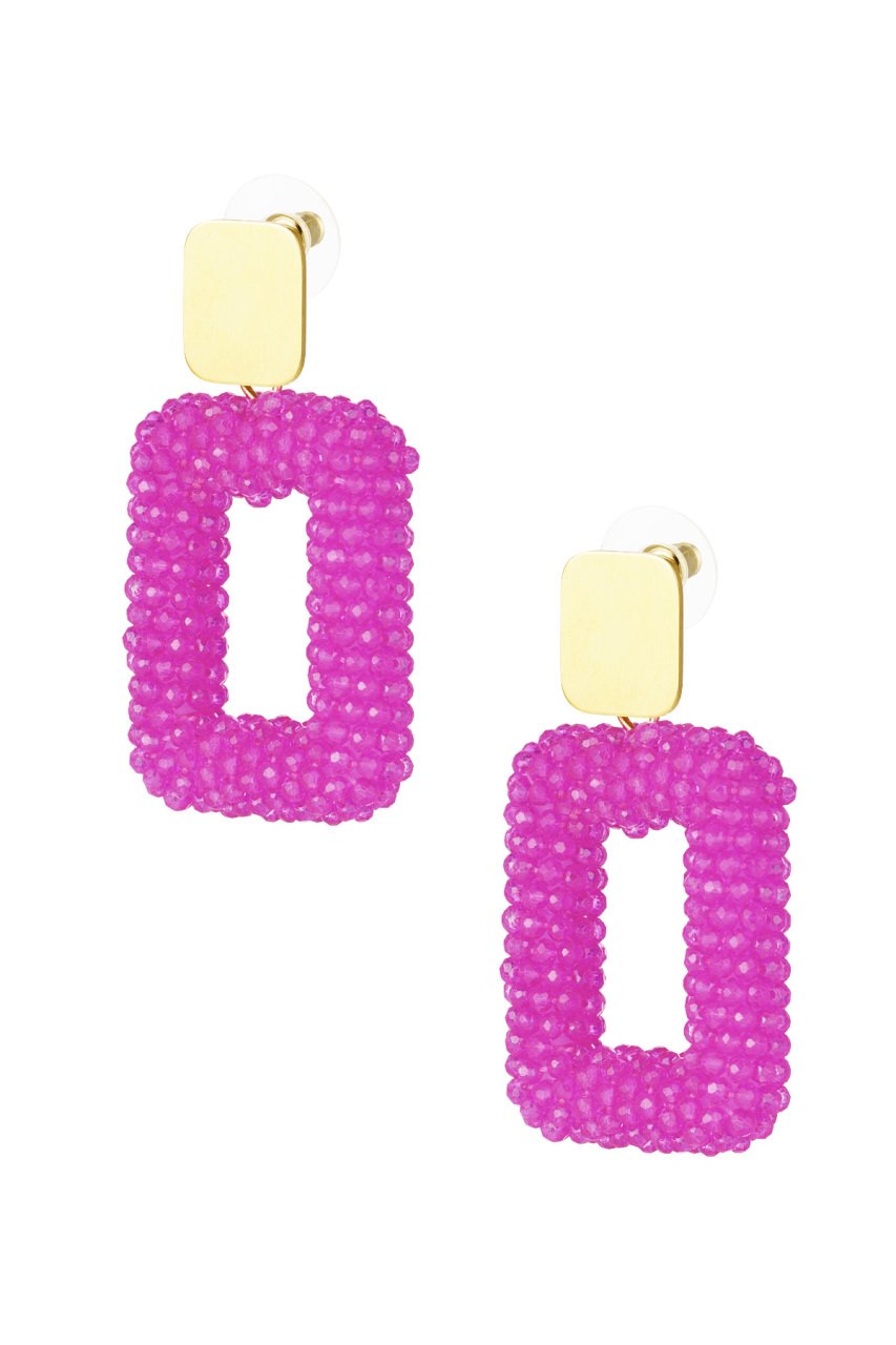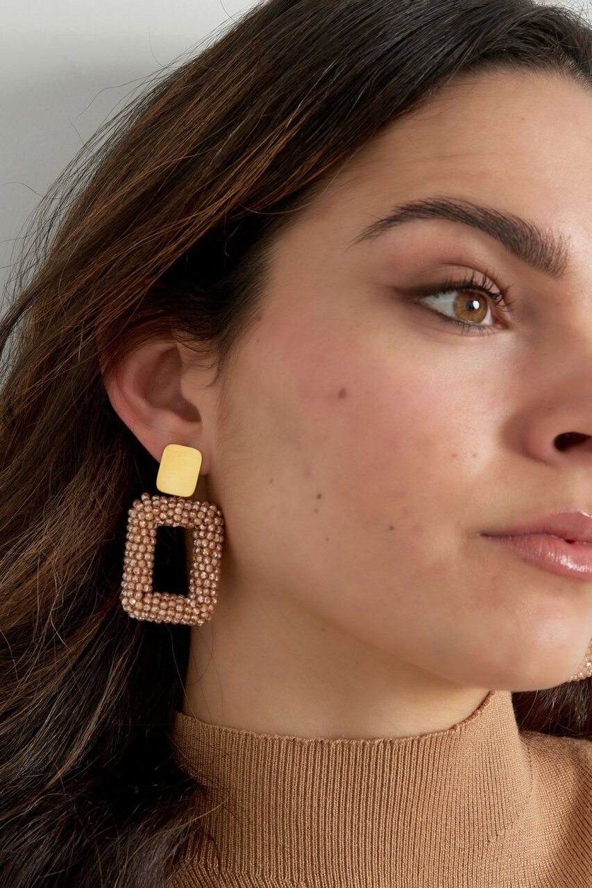 Rechthoek oorbellen met glaskralen - rosé