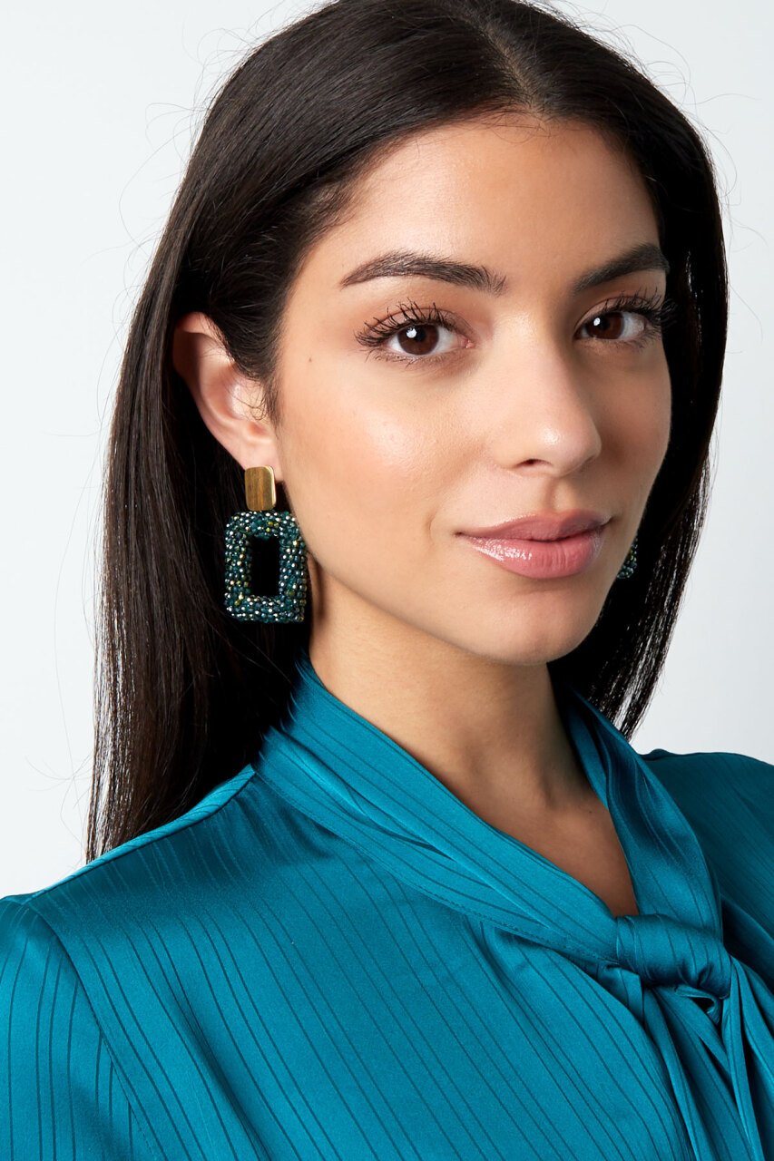 Hoe leuk zijn deze rechthoekige oorbellen met glaskralen? Deze oorbellen geven een extra touch of color aan je outfit.Materiaal: Stainless... Read more