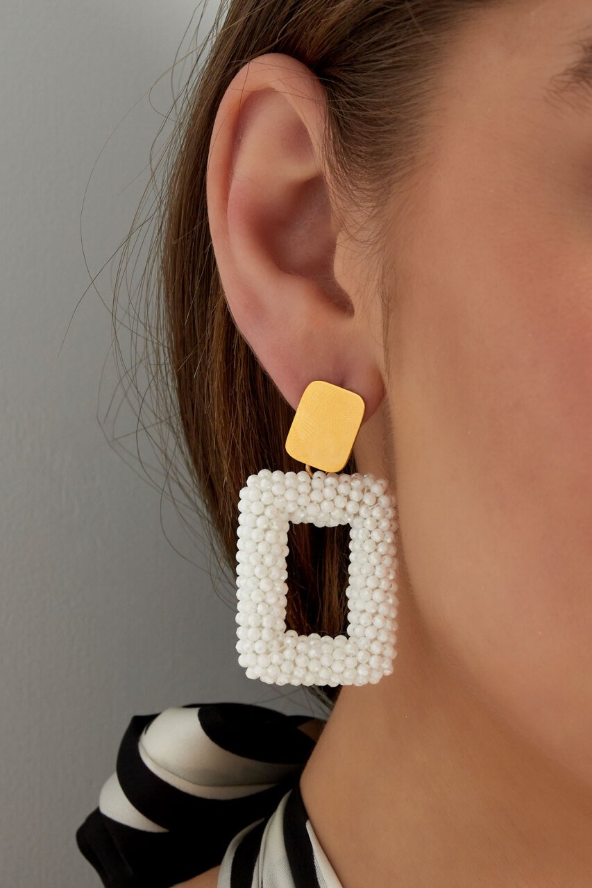 Hoe leuk zijn deze rechthoekige oorbellen met glaskralen? Deze oorbellen geven een extra touch of color aan je outfit.Materiaal: Stainless... Read more