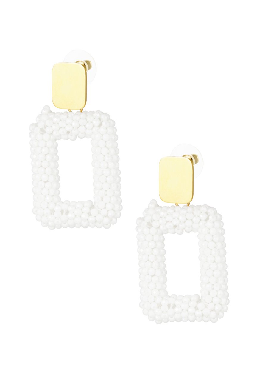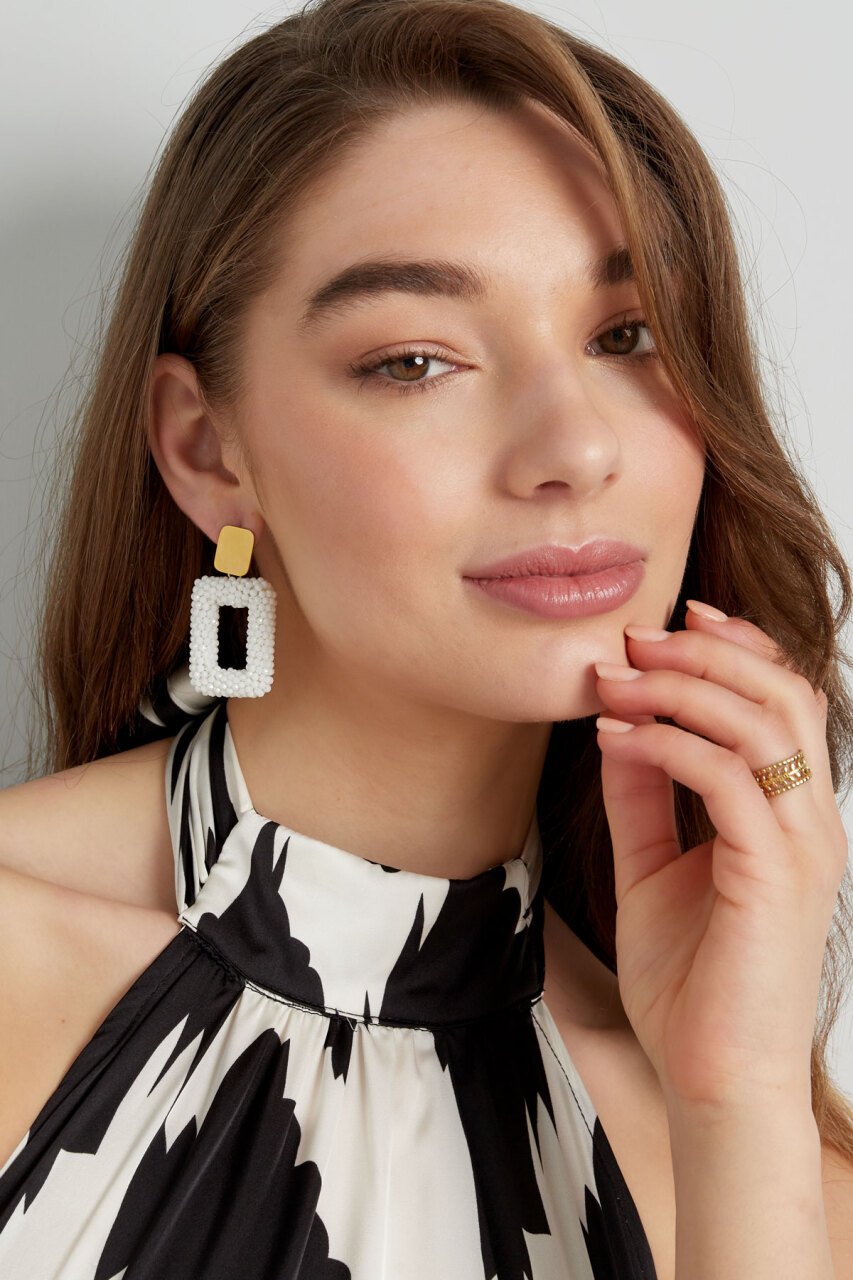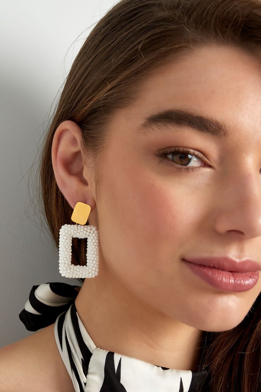 Hoe leuk zijn deze rechthoekige oorbellen met glaskralen? Deze oorbellen geven een extra touch of color aan je outfit.Materiaal: Stainless... Read more