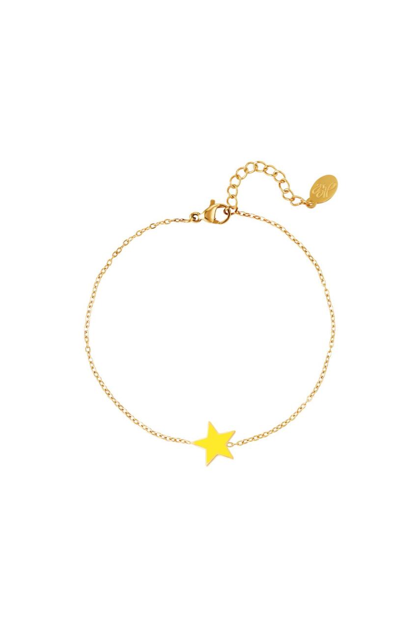 Roestvrijstalen armband met geëmailleerde ster.Materiaal: Stainless Steel & Emaille Kleur: Geel Kleur 2: Goud Gewicht: 1.70g Afmetingen: 16cm + 3cm... Read more