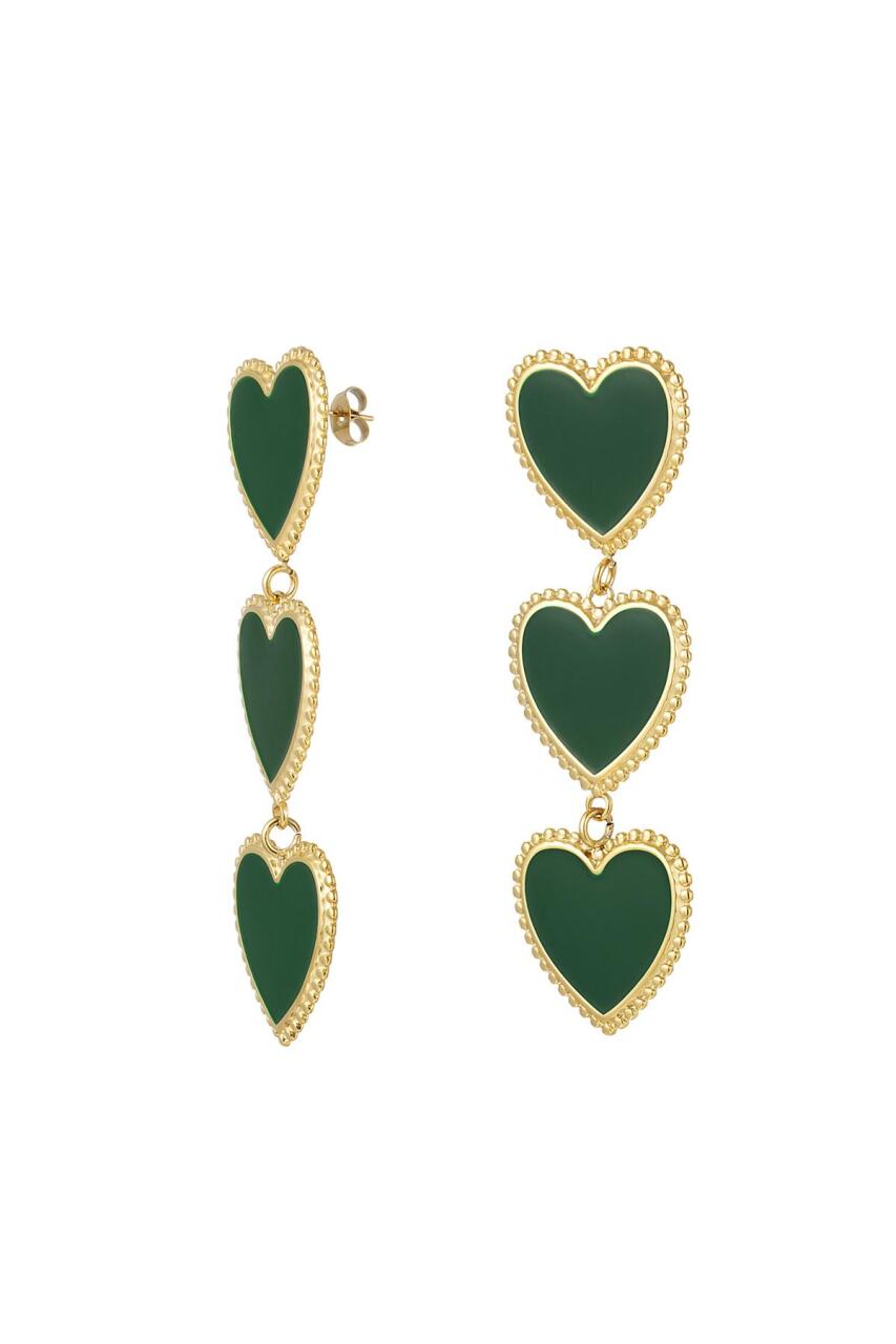 Hoe tof zijn deze gouden statement oorbellen met drie donkergroene sierlijke hartjes op een rij! De oorbellen zijn voorzien van... Read more