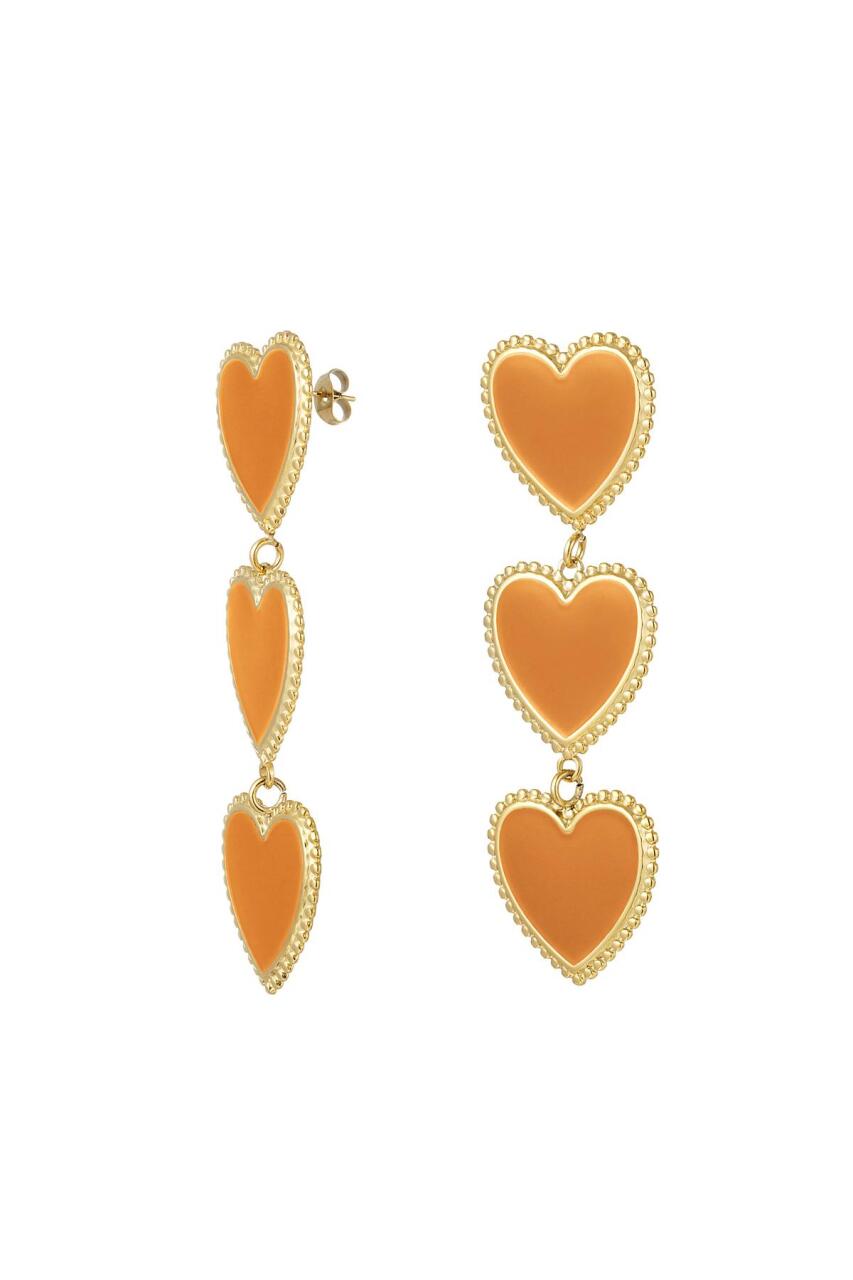 Hoe tof zijn deze gouden statement oorbellen met drie oranje sierlijke hartjes op een rij! De oorbellen zijn voorzien van... Read more