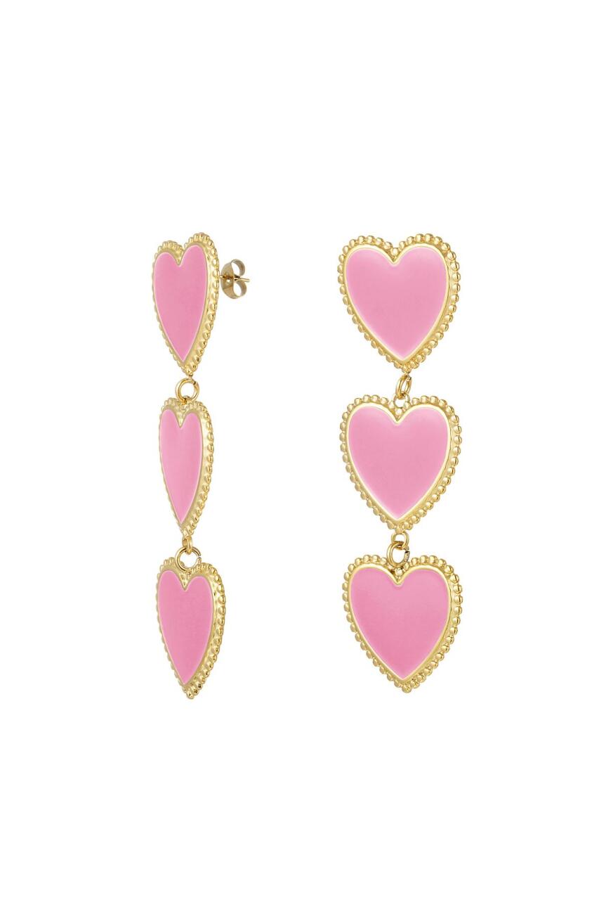 Hoe tof zijn deze gouden statement oorbellen met drie roze sierlijke hartjes op een rij! De oorbellen zijn voorzien van... Read more