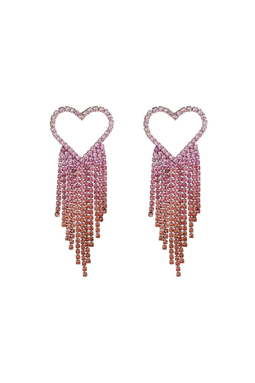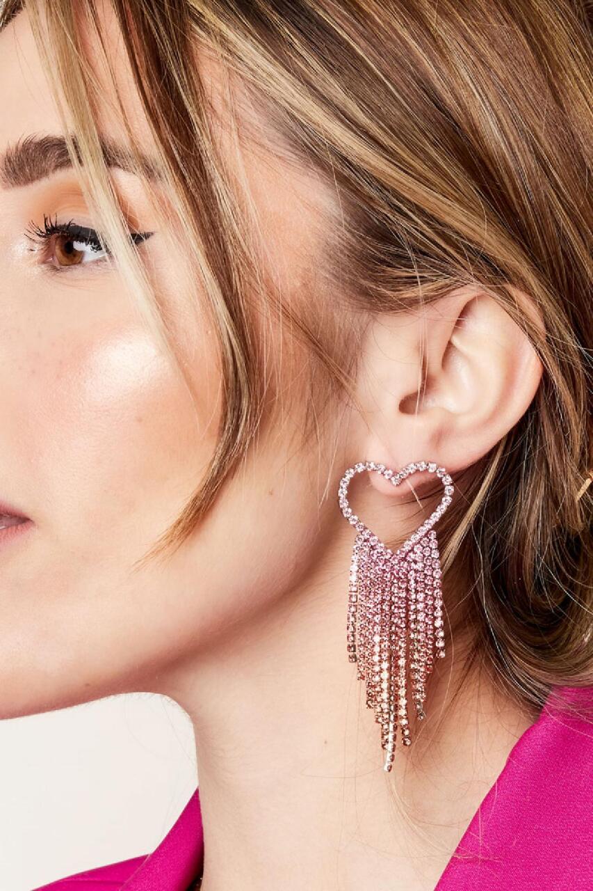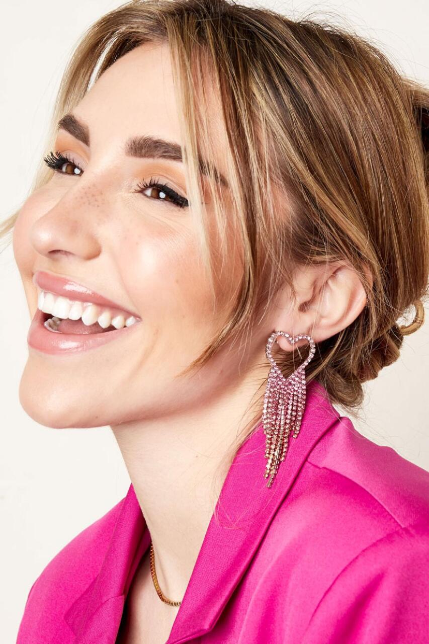 Strass oorbellen hart - Holiday Essentials Roze & Silver Koper