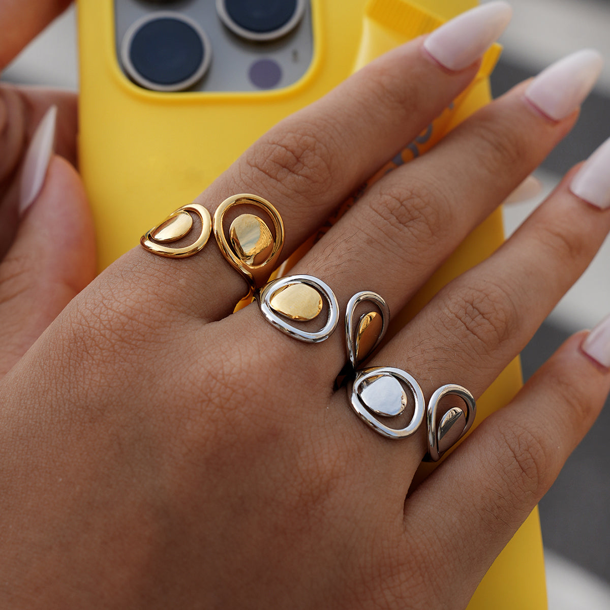 Vintage minimalistische holle roestvrijstalen statement ring goud zilver
