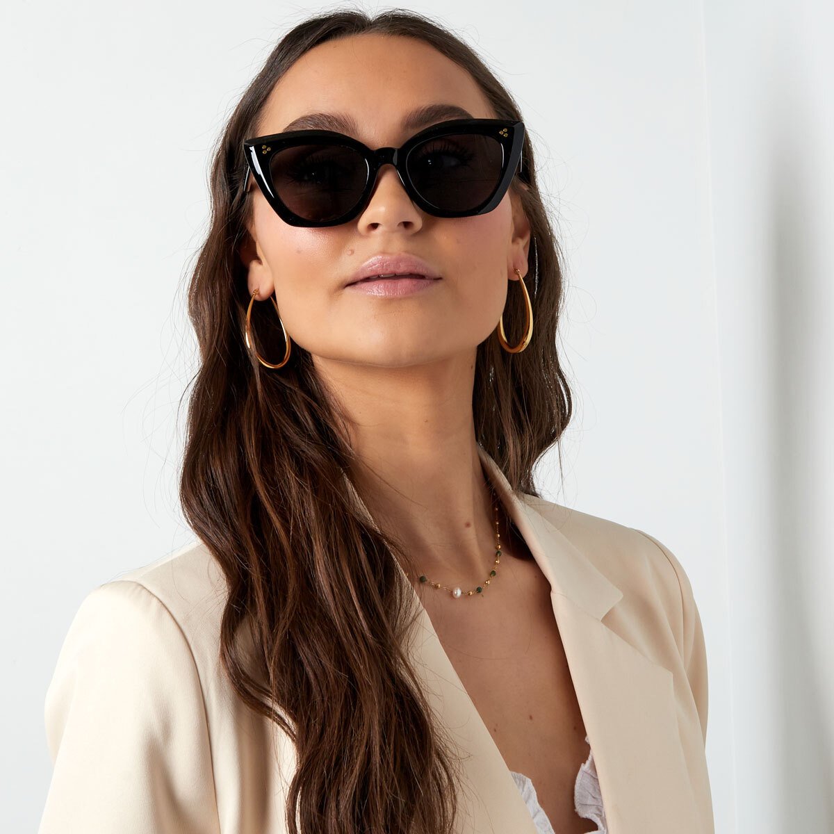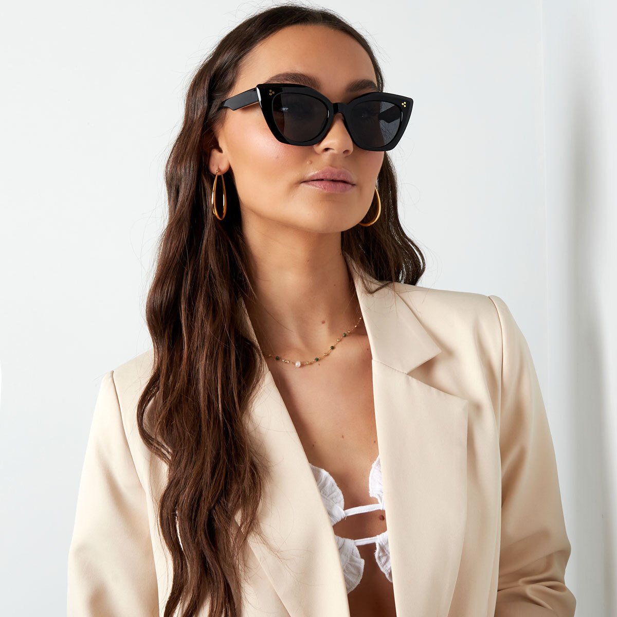Hoe tof is deze bruin met print kleurige zonnebril in de vorm van een cat Eye met gouden details! Deze... Read more